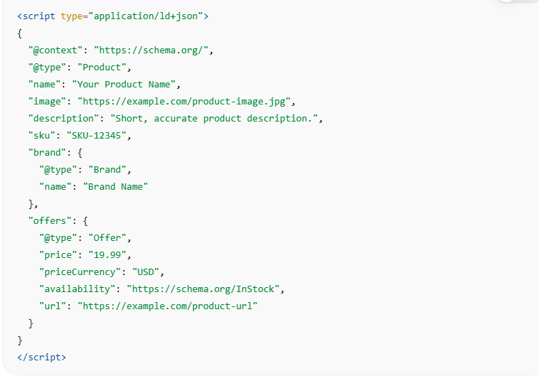 In practical terms, BigCommerce schema markup is a block of JSON code added to your product pages, category pages, blog posts, or homepage that communicates structured information such as: